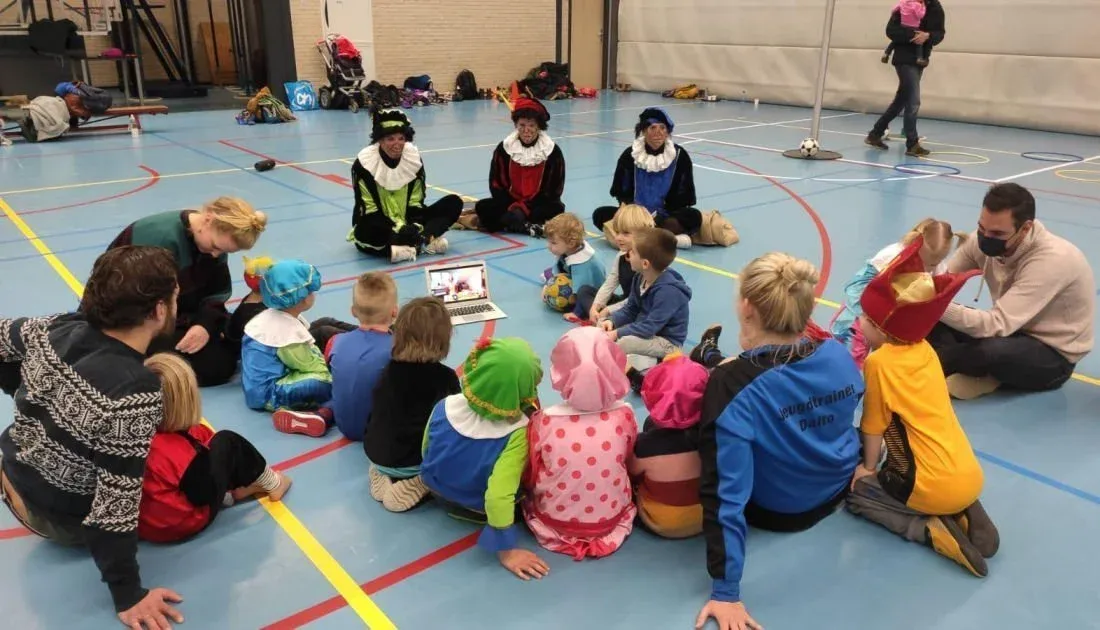 Vrijdag 4 december tijdens de training van de D-, E- en F-teams kwamen er twee pieten langs met een boodschap van de Sint, cadeaus en pepernoten (Corona proef in uitdeelzakjes). De boodschap van de sint was een vooraf gefilmd filmpje, dat we aan alle kinderen hebben laten zien. De pieten waren erg nieuwsgierig naar het korfballen, dus kregen ze korfballes van de F-teams.