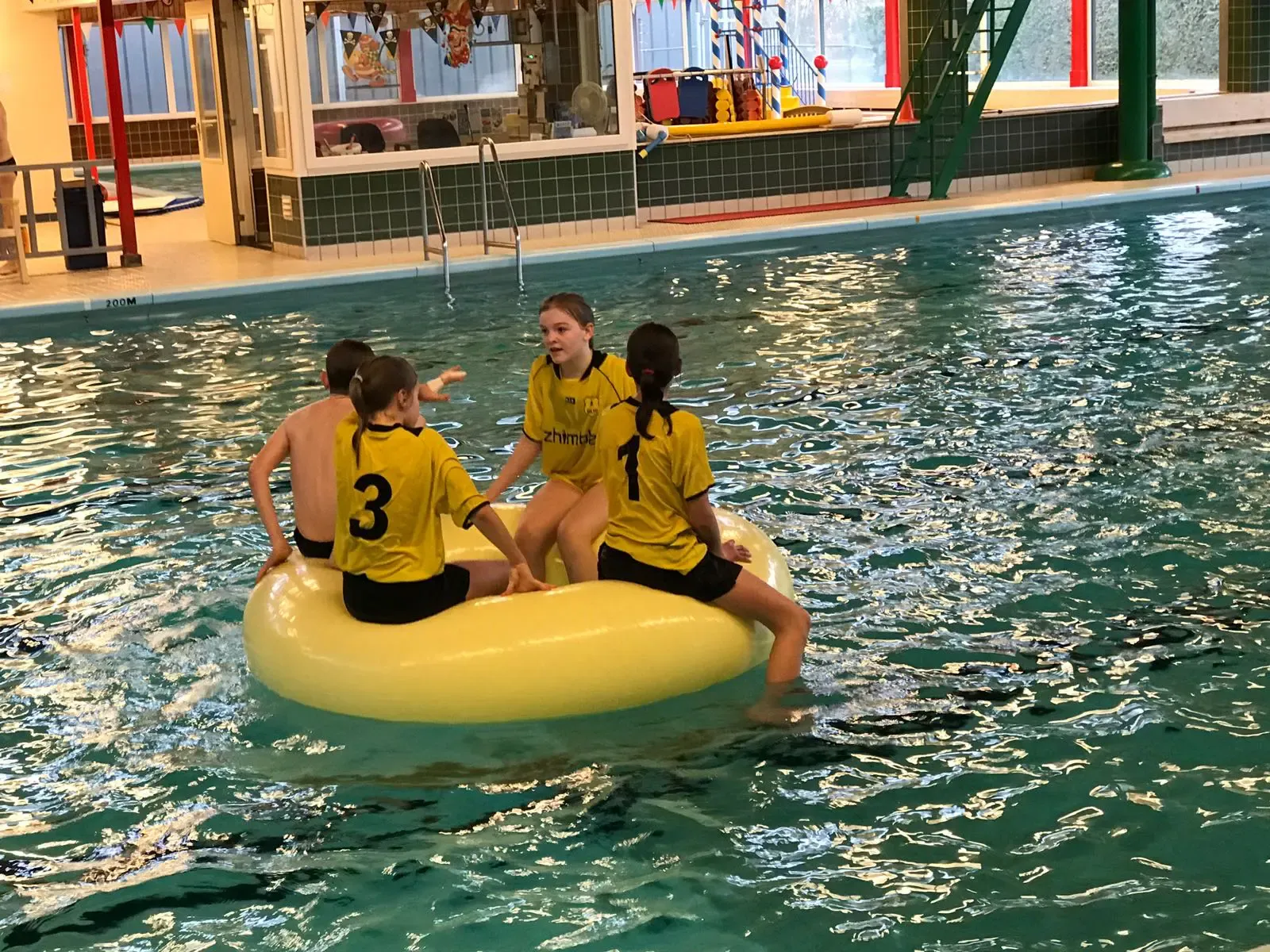 Het kampioenschap hebben we gevierd met een duik, in onze Dalto kleren, in het zwembad dat naast de sporthal was. Na het zwemmen gingen we met blije gezichten weer terug naar Hoenderdaal! Nu nog één wedstrijd thuis en dan het NK!!!