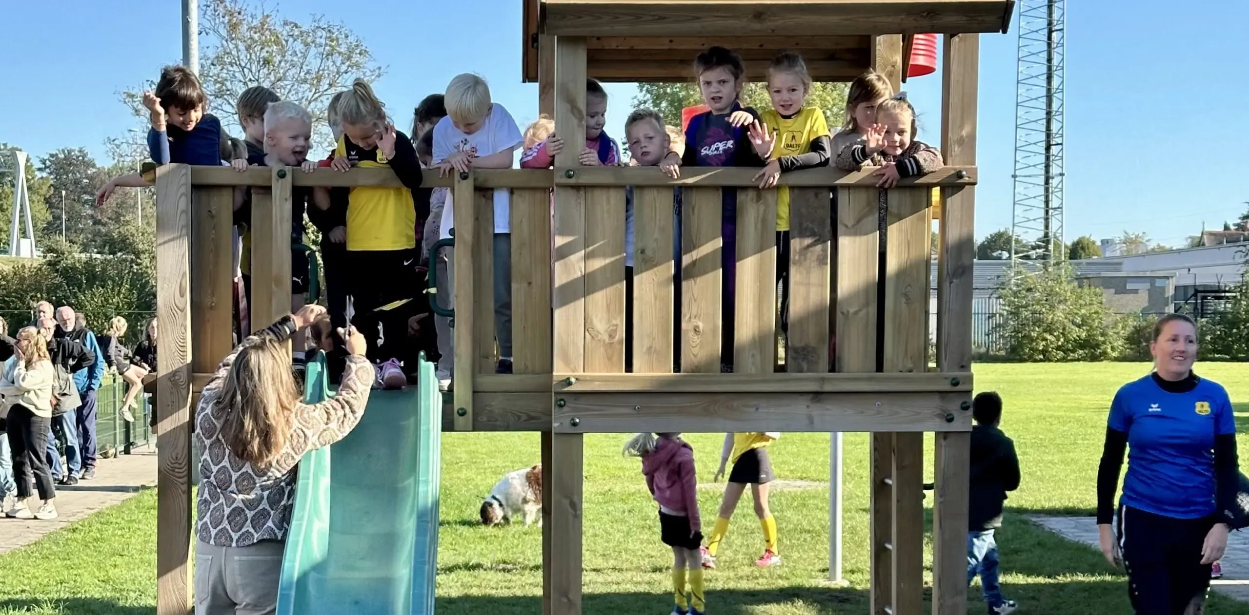 Afgelopen week heeft het klusteam het opbouwen van het speeltoestel afgerond. We mogen het wel een speelkasteel noemen. Wat een geweldig speelhuis met een mooie glijbaan. De initiatienemers Bianca, Daphne en Tessa hebben hiervoor een aanvraag ingediend bij de Vrienden van Dalto. Met dank aan de initiatiefnemers, de Vrienden van Dalto en het klusteam!