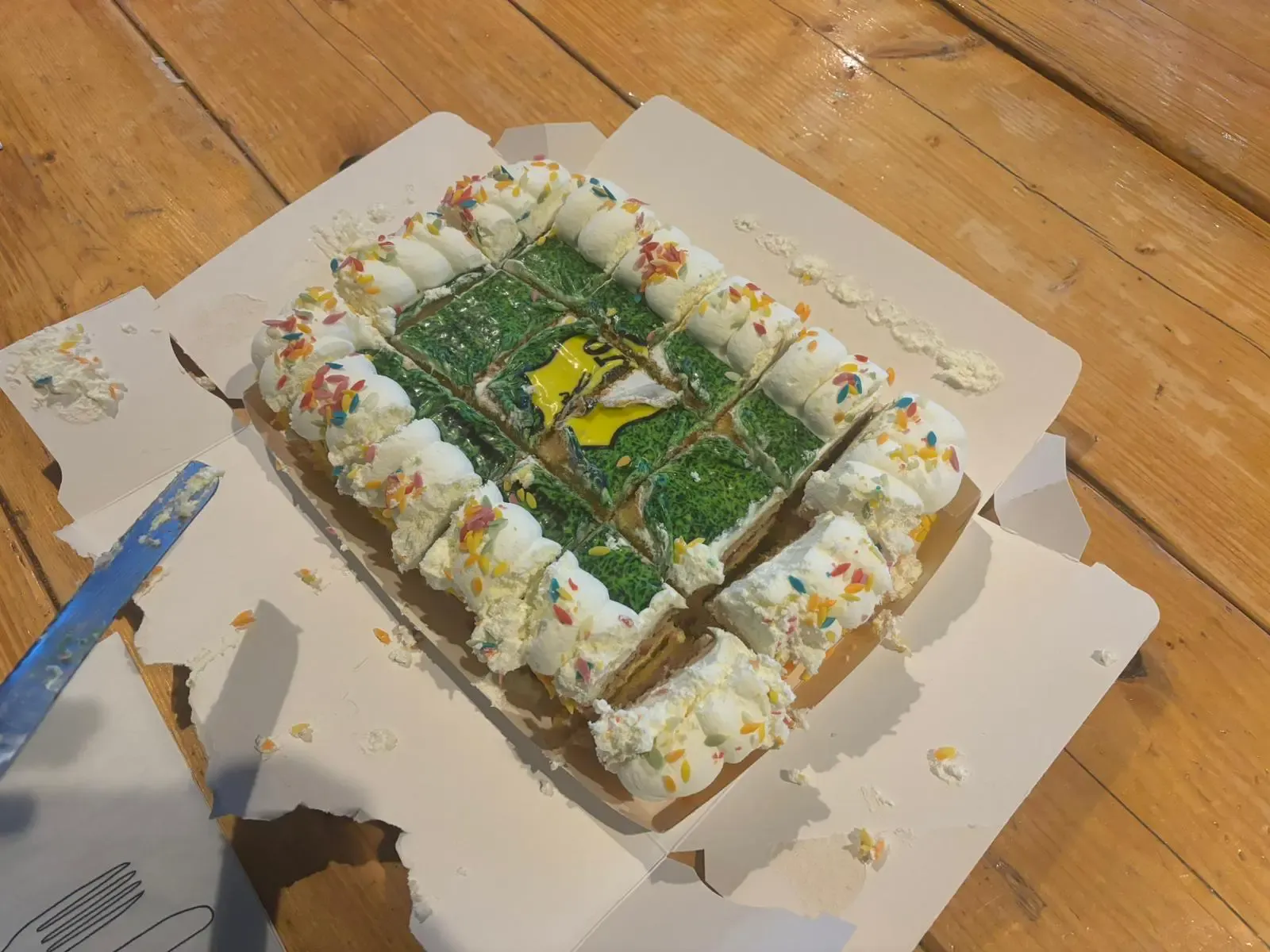 Na precies een week stond de D2 aan kop met de lotenverkoop voor de GCA. Ze verkochten met elkaar in een week tijd maar liefst 461 loten!! Gemiddeld 46 loten per persoon. Een geweldige prestatie. Daarom smulden zij woensdagavond van hun welverdiende taart. Die uitgereikt werd door niemand minder dan Fenna Cavelaars uit onze